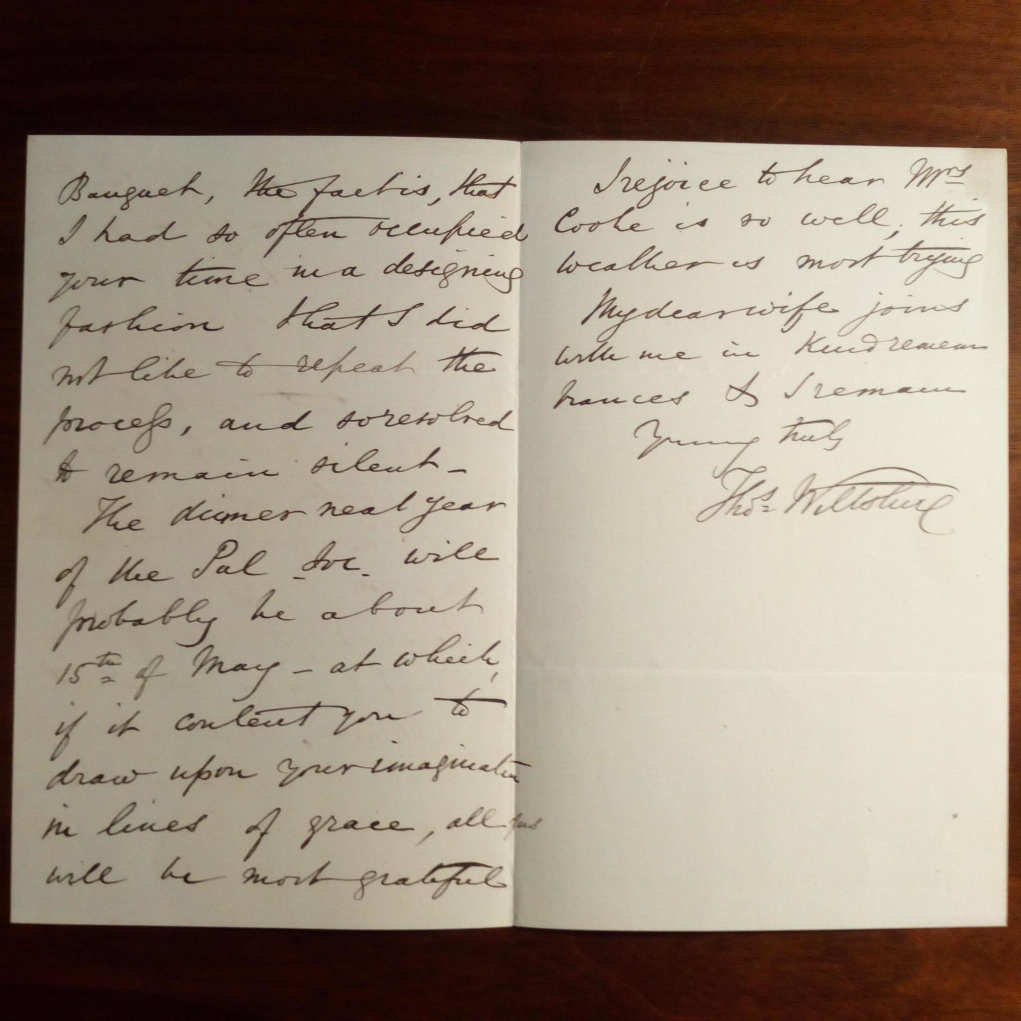 1826-1902, brit. Theologe und Paläontologe - E. Brief mit U., (London) 7.6.1879, 2 ½ S. kl. 8°, ger. fleckig. An den Ingenieur Conrad William Cooke (1843-1926): ...Enclosed is the card of invitation to the...workers, which please bring with you - Be quiet easy in your mind with regard to after dinner speaches... und betr. anderer Termine.