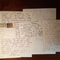 1928-92, Maler und Graphiker - 3 e. Br. m. U. (einer nicht vollst.) und 2 e. Karten m. U., Br.köpfe, Düsseldorf und Alicante 1973-87, 3 e. postal. Umschläge. An den Historiker Eckhard Goldberg in Rheydt (Pfalz): über aktuelle Arbeiten und Gedanken. ...Beuys kannten wir natürlich noch aus früheren Tagen, d.h. 1956-57, haben uns auch gegenseitig besucht, bis dann für ihn die Jahre ungehemmter Selbstdarstellung begannen...