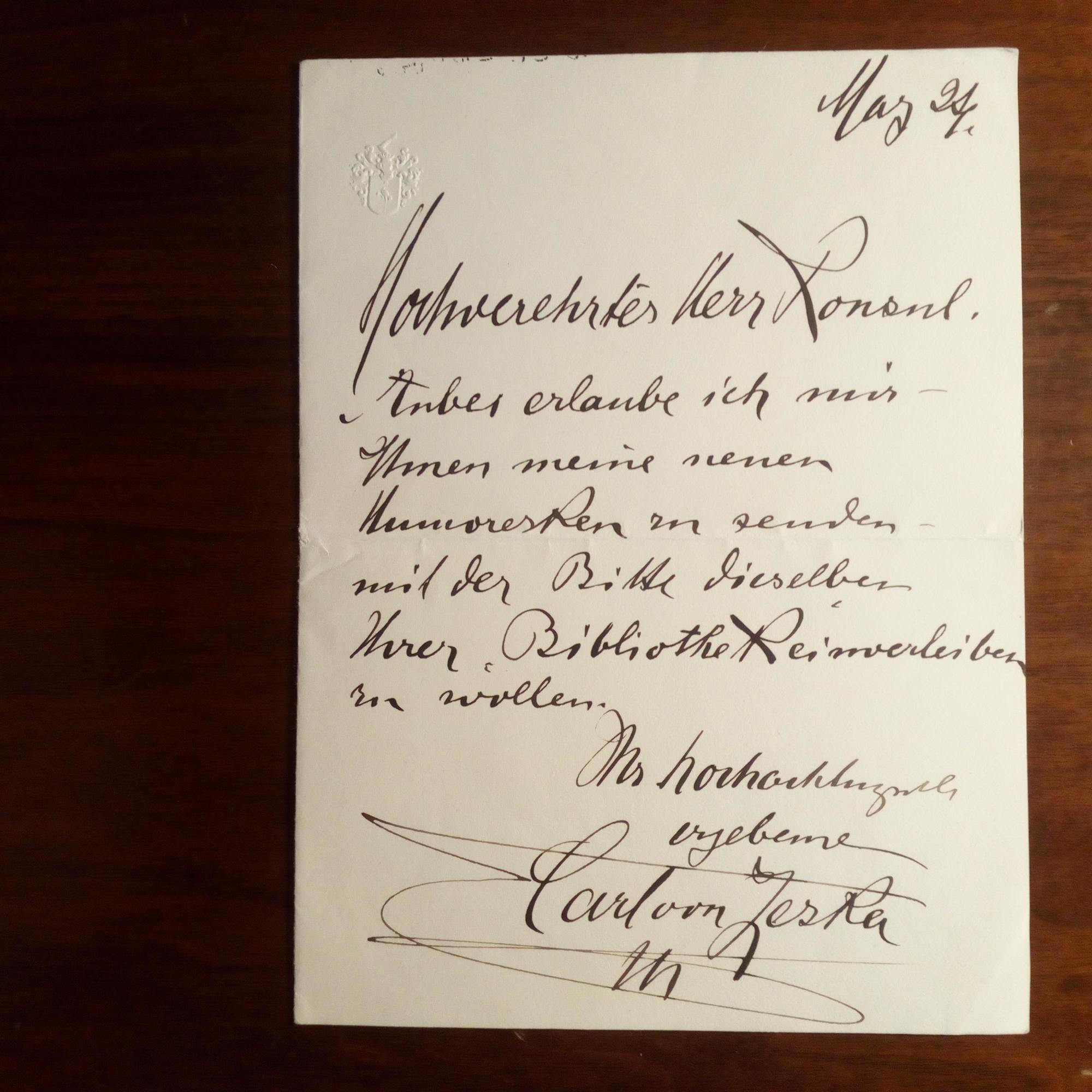 1843-1922, österr. Komponist - E. Br. m. U., (Wien) 10.3.1903, 2 S. 4°, Br.kopf als Hofkapellmeister, kl. Randschaden. An den österr. Komponisten und Dirigenten Eduard Kremser (1838-1914) wegen der zu hohen Kosten des Opernchores u.a. Organisatorischem. Beiliegt ein e. postal. Umschlag (U. im Abs.).