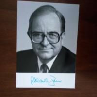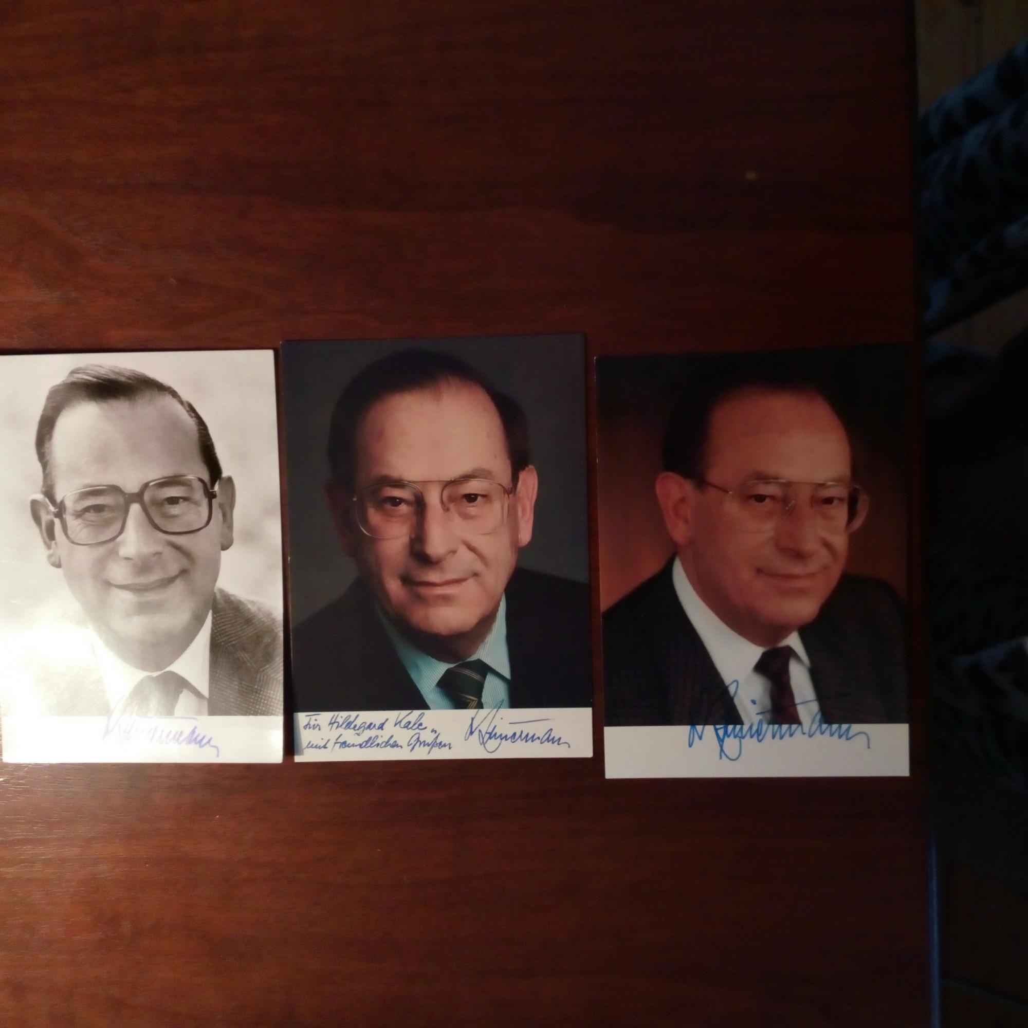 1925-2012, CSU-Politiker (u.a. Bundes-innenmin.) - 2 versch. Farb-Pfo. m. U., eines m. Widm.