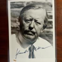 1922-2002, Schauspieler - 2 versch. Pfo. m. U., eines m. Widm. u. D. Dez. 1987.