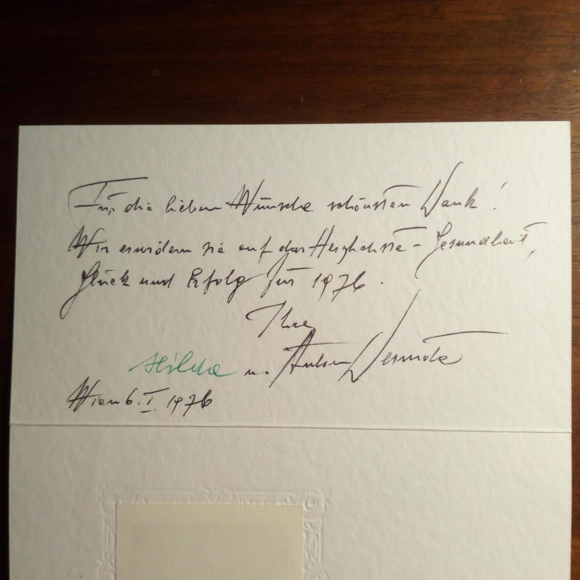 1910-89, österr. Tenor - Schmuckkarte m. e. Zeilen u. U., Wien 6.1.1976, erwidert Neujahrswünsche.