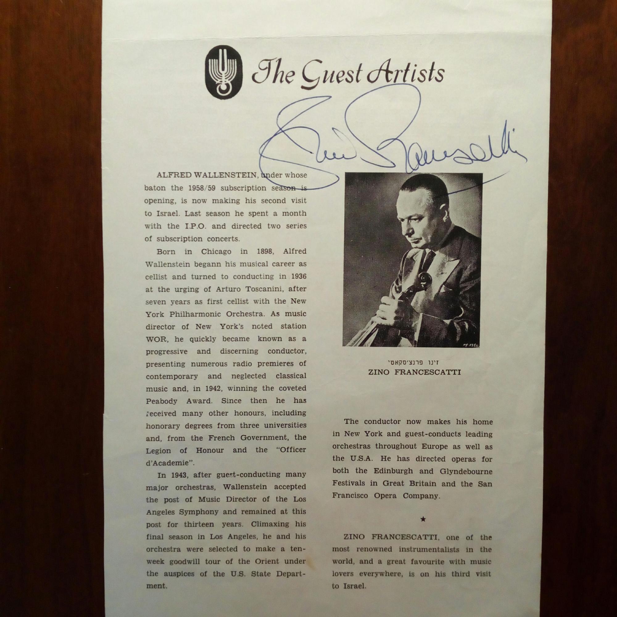 1902-91, frz. Violonist - Blatt aus einem israel. Programmheft (Tel Aviv, ca. 1960). Darauf U. über Pfo.