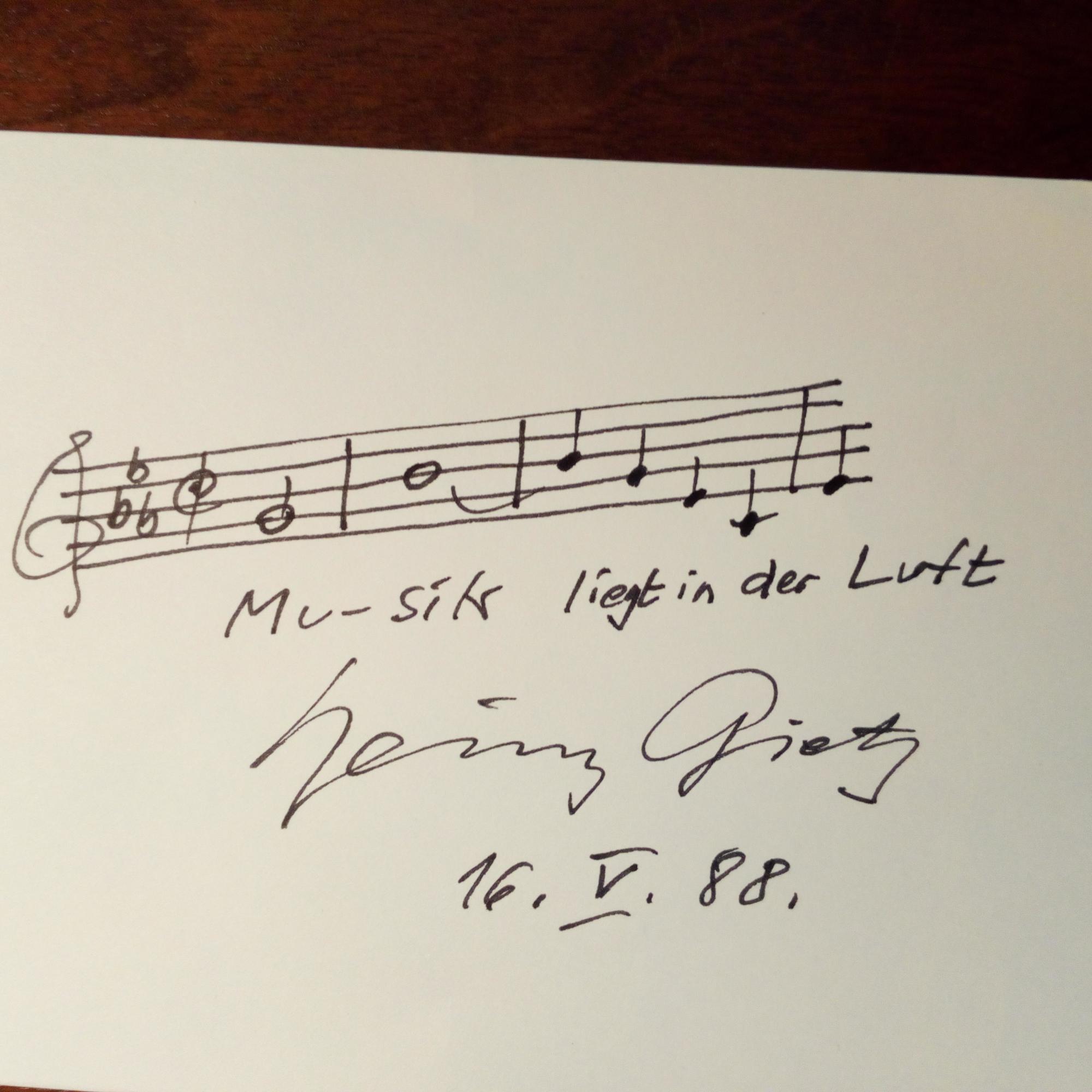 1924-92, Schlager-Komp. - Karte m. e. Notenz. (3 Takte "Musik liegt in der Luft"), U. u. D. 16.5.1988, geringe Knickspur.