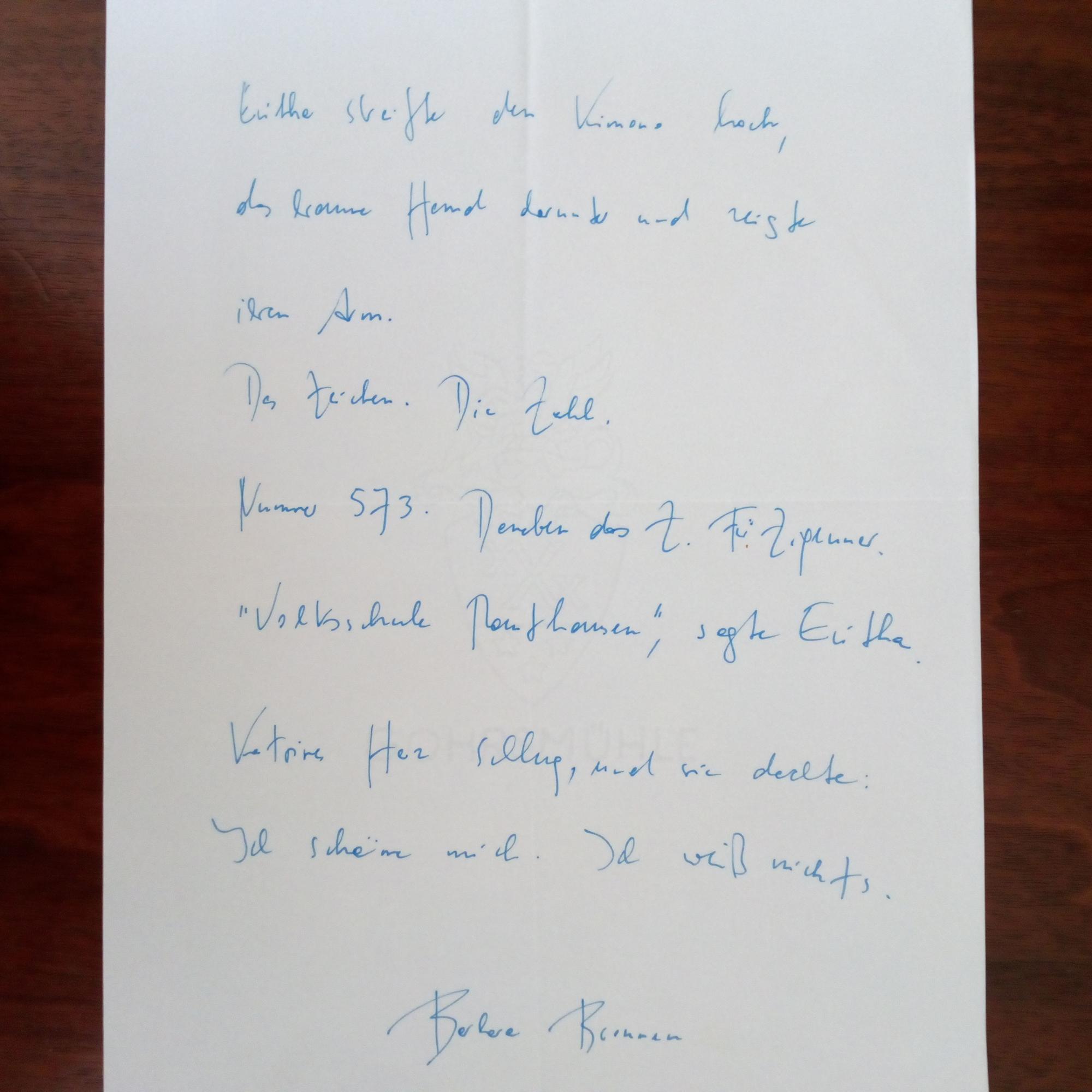 1938-2019, Schriftstellerin, Tochter von Arnolt B. - 4°-Blatt mit e. Zitat und U., 1 S. Mit e. postal. Umschlag (15.7.1988).
