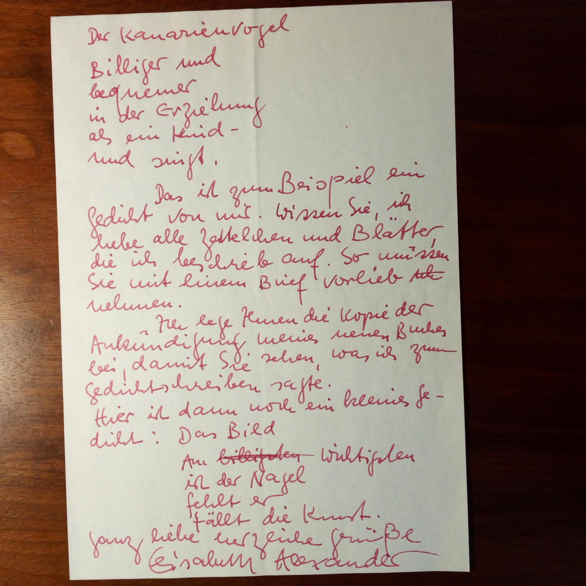 eigenhändiger Zusatz (z.B. Empfehlungsformel, Gruß) |