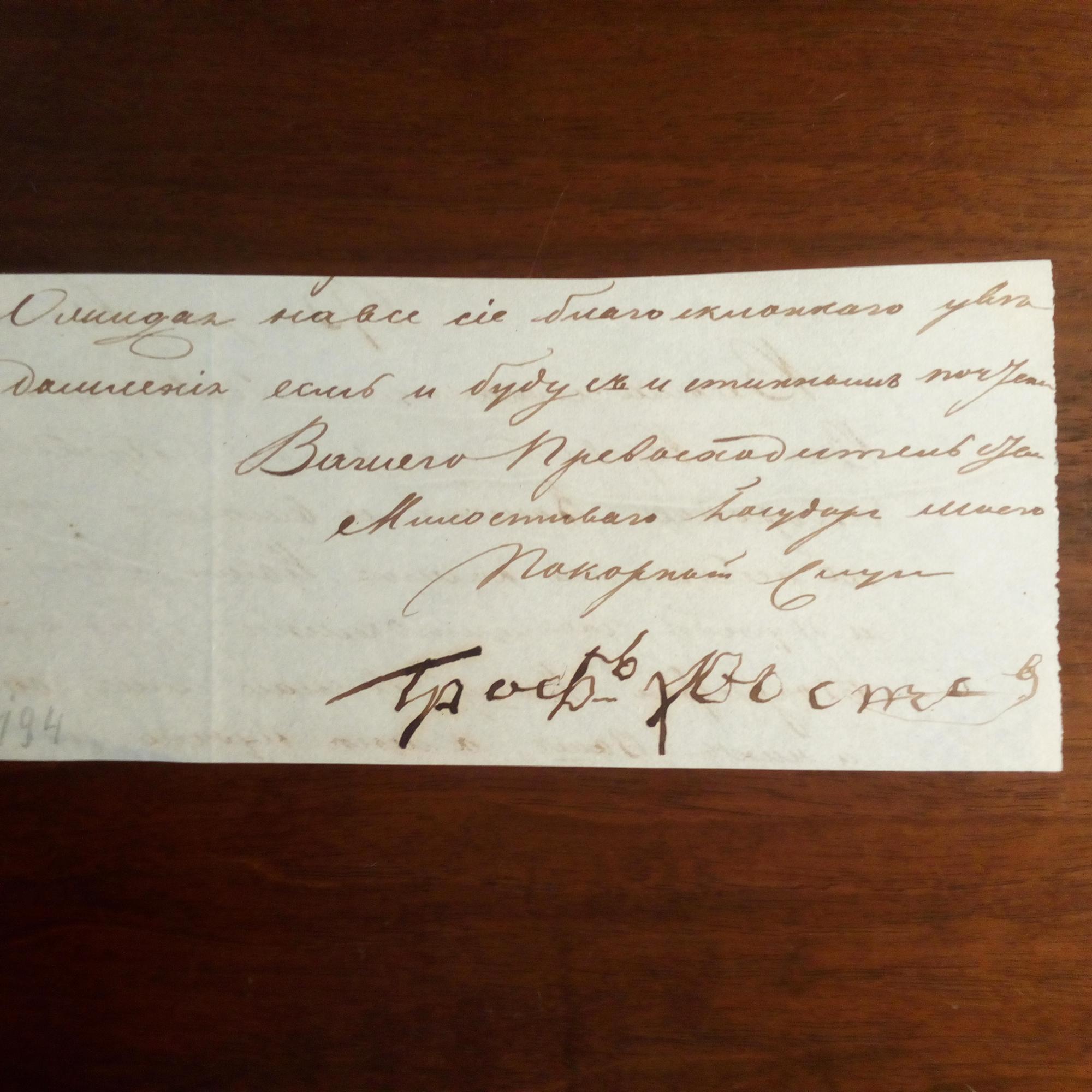 1757-1835, russ. Graf, Schriftsteller und Politiker - Fragment eines Briefes (russ.) mit U.