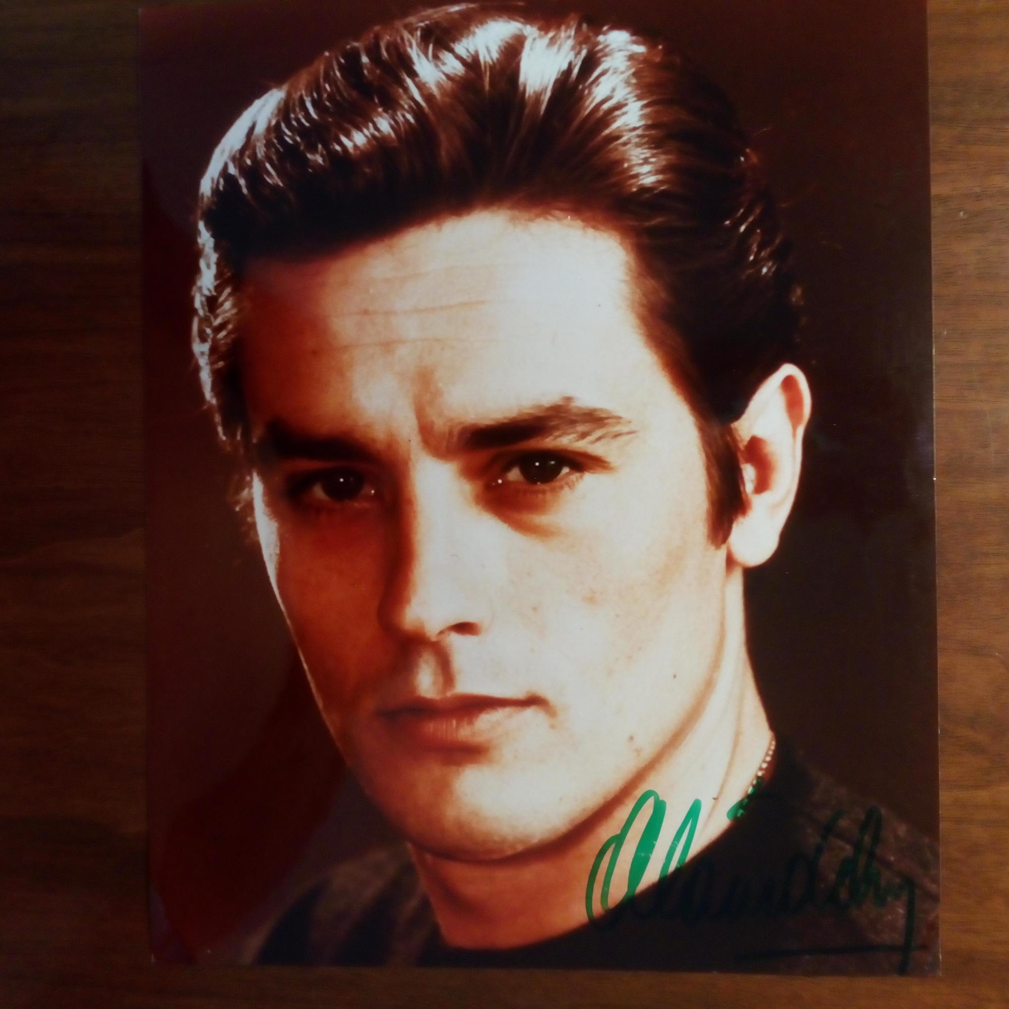 1935-2024, frz.-schweiz. Schauspieler - Farb-Pfo. (ca. 4°, Hochglanz, Repro aus Cannes 1958) mit U., ger. Gebr.spuren. Beiliegen: Pfo. (mit Werbe-Käppi, um 1970) und Farb-Pfo. (um 1990), je mit U.
