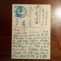 1913-99, Maler und Graphiker - E. postal. (Witten 21.8.1956 ?) Ansichtskarte (nach einer Graphik) m. U. An den Galeristen Heinz Clasing (1911-89) in Münster: ...Leider habe ich nichts da, habe meine Arbeiten fast alle vernichtet ... Jetzt arbeite ich an meinen Bildern langsam...
