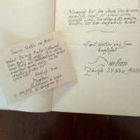 1893-1975, österr. Bildhauer und Lyriker - E. Gedicht (4 Z.) mit Widm. mit U., Zürich 24.11.1937, auf Vorsatz seines Gedichtbandes "Die Sonette an Gott", Amalthea-Verl. 1923 (unbeschn. Vorzugsausgabe). Für den schweizer Schriftsteller Emil Walder (1907-2003) und Gattin. (Abbildung). Beiliegt e. postal. Postkarte mit U., (Wien 29.11.1927). An den Schriftsteller Walter von Molo (siehe Nr. 27) in Berlin ("Haus Molo"): ...möchte Dir wieder einen Brief und Publikationen meiner armseligen Werke senden, der Du erhabenen Geistes bist!... Beides e. Stilschrift.