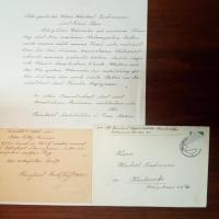1903-77, österr. Sängerin (Alt) - 8°-Blatt mit U., O. und D. Wien 16.2.1925. Beiliegt weiteres mit U. und D. 1951. Hier auf Rückseite U. des Sängers Hugo Meyer-Wolfing (1905-69).