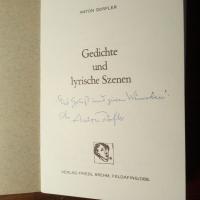 1890-1981, Schriftsteller - E. Gedicht ("Mittagsstille", 3 Str. à 4 Z.) u. U. unter dem Abdruck des Gedichtes in seinem Buch "Gedichte und lyrische Szenen", Brehm-Verl., Feldafing 1976. Auf Titel e. Grüße und weitere U., verl.frisch.