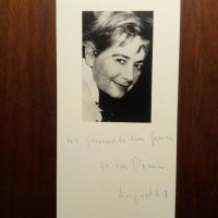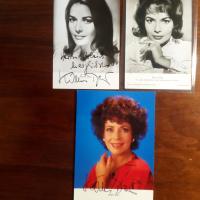 1938-2017, Film-Schauspielerin - Pfo. (in "Die schwarze Witwe" nach E. Wallace, 1963) mit U. (diese etw. berieben). Beiliegt Pfo. mit Widm. und U. (ca. 1965) und Farb-Pfo. mit U. aus späterer Zeit.
