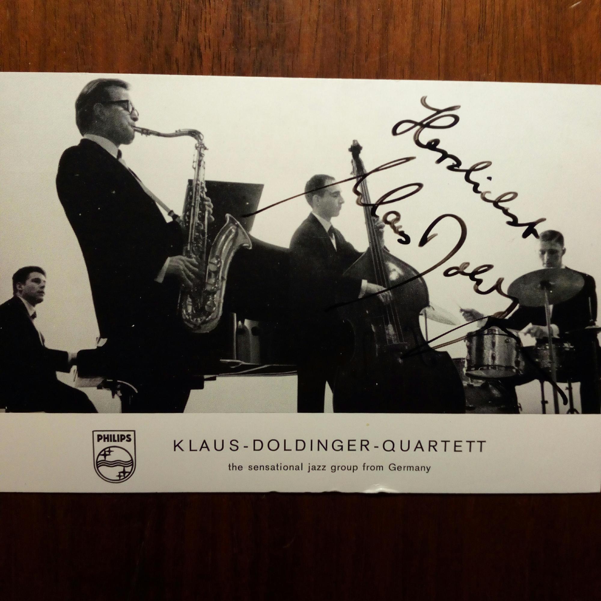 1936-2025, Jazz-Musiker (bes. Tenor-Saxophon), Bandleader und Komponist - Foto des "K.-D.-Qartetts" beim Spielen (beschriftet "The sensational jazz group from Germany", 1963) mit E. und U. Beiliegt ein Farb-Pfo. mit U. von 1981.