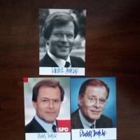 1940-2025, Politiker (SPD) - Pfo. (1987) mit U.. Beiliegen 2 Farb-Pfo. (aus späteren Zeiten) mit U. (eines mit Widm.).