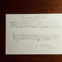 1908-2000, US-Komponist (bes. Filmmusik, u.a. zu "Star Treck") - kl. 8°quer-Blatt m. 2 e. Notenz. ("From Here to Eternity", 6 Takte), Bleistift, spätere U.