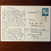 1894-1974, Geologin, Witwe des Malers Hermann E. (1881-1955) - E. postal. Postkarte mit U., Haunshofen 1964, kl. und dicht geschr., weitere U. im Abs. An Steigelmann in der Pfalz betr. einer Ausstellung mit Werken ihres Mannes, Besuchs bei ihr weg. Bilderkäufen u.a.