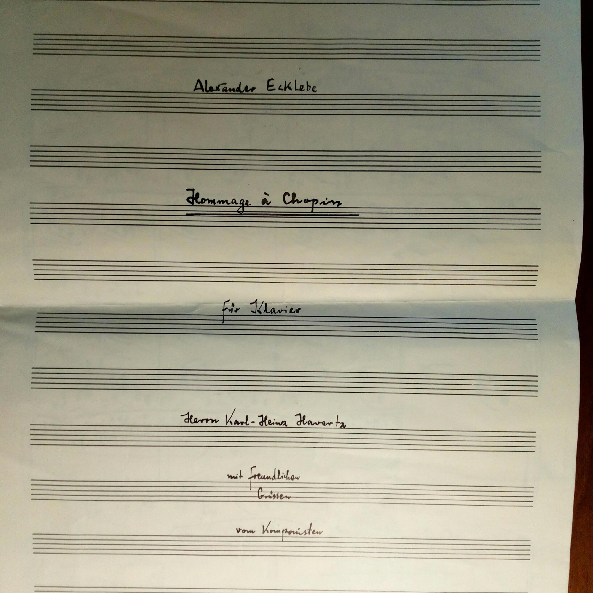 1904-83, Komponist - E. folio-Noten-Doppelblatt. "Hommage an Chopin". Titelseite e. beschriftet. Widm. für Karl-Heinz Havertz. Mit Begleitbrief mit U., Berlin 5.5.1979, ½ S. 4°.