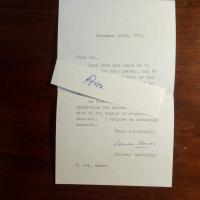 1868-1954, Luftschiffer, Mitarbeiter v. Graf Zeppelin - 1. E. Brief mit U., Hamburg 10.7.1912, 1 S. gr. 8°, kl. Gebr.spuren. Kondoliert Herrn Peter ausführl. zum Tod seines Kindes. 2. 2 S. 4° aus seinem Tagebuch: Samstag, 1.12.1928 (kurz nach seiner Fahrt in die USA), kl. Schrift, Briefkopf, ca. ¼ in Bleistift (dieser Teil durch Abrieb meist unleserlich u.a. kl. Altersspuren). U. a. über den "Ball der Auslandspresse", einen Minister u. Planungen für eine Luftschiff-Linie Spanien-Argentinien.