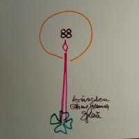 1917-88, Maler und Graphiker - Kunstdruck (nach einem abstrakten Aquarell) auf kl. 4°-Doppelblatt. Auf Titel e. kl. Farbzeichnung (Weihn.kerze) und e. Neujahrswünsche 1988 für "Otto und Johanna".