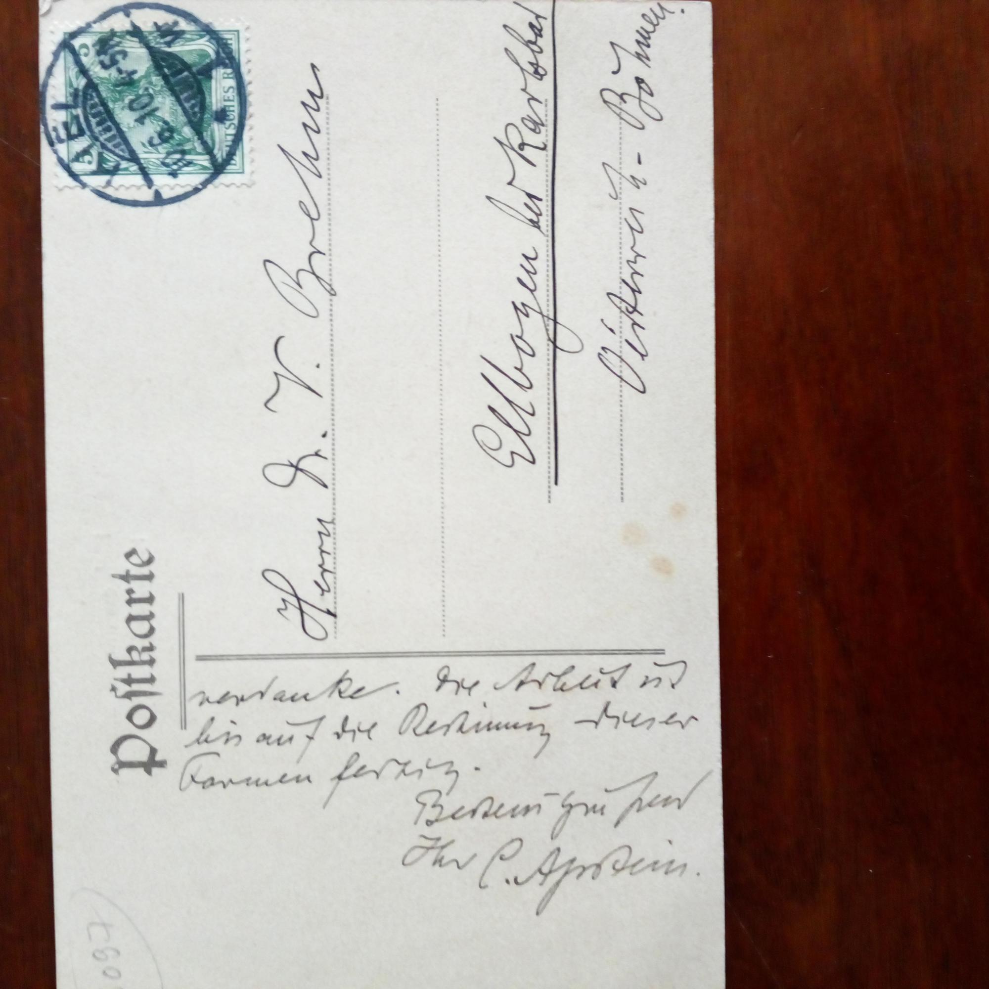 1862-1950, Zoologe - E. postal. Ansichtskarte (Labor für internat. Meeresforschung in Kiel) m. U., Kiel 10.6.1910. An seinen Kollegen Vincenz Brehm (1879-1970) in Böhmen: Bittet um Mitarbeit bei der Bestimmung von Proben aus dem Gregory-See in Ceylon.