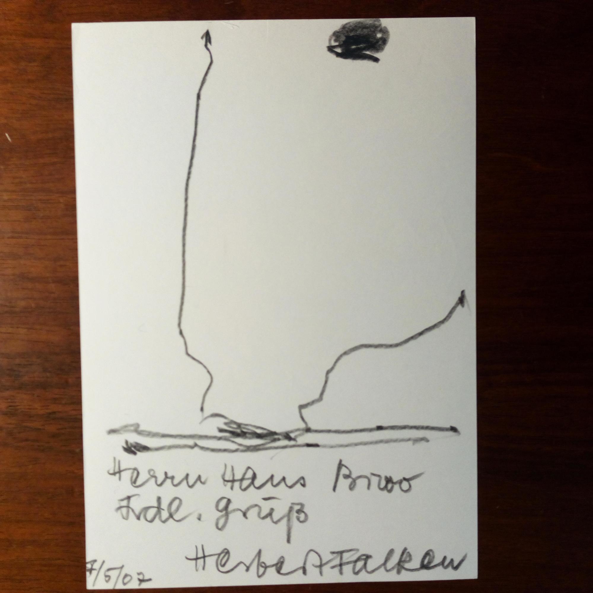 1932-2023, kathol. Priester in Aachen, Maler und Graphiker, Freund von Böll - E. Zeichnung (abstrakt ?) mit U. und D. 7.5.2007, als e. postal. Postkarte (U. u. weitere kl. Zeichnung im Abs.).