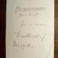 eigtl. E. Jeschke, 1892-1962, österr. Komponist, Texter und Interpret v. Wiener Liedern, Bruder des Schausp. Fritz Imhoff - 8°-Blatt m. e. Notenz. (3 Takte, "Beim Burgtor...") m. E., U., Dez. 1928.