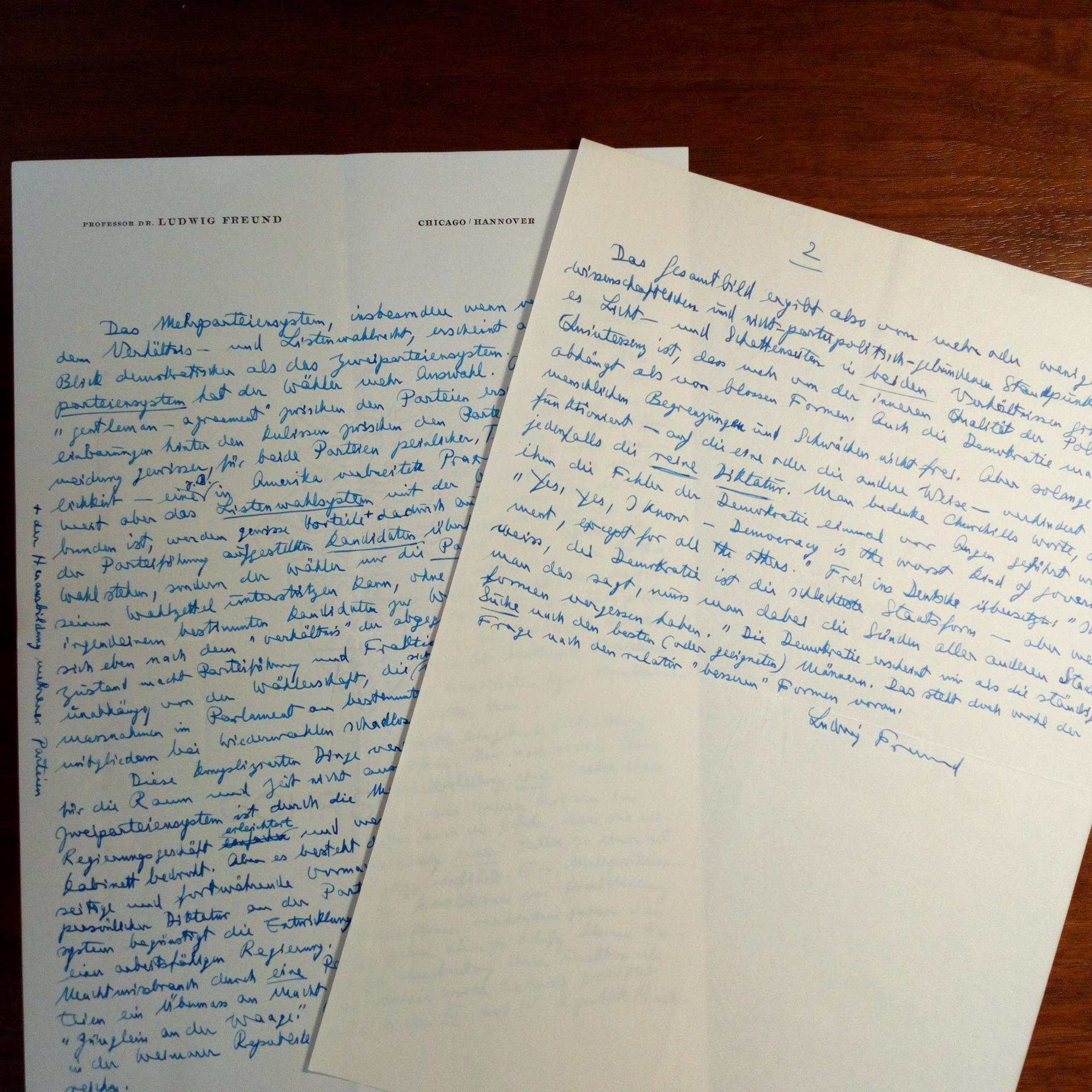 1898-1970, Politologe und Soziologe - 16 Autographen (meist e. Briefe und Postkarten) mit U., Hannover 1960-67. An einen Sammler. Dabei e. Manuskript "Das Mehrparteiensystem" (1 ½ S. 4°), Brief von 1962 über "nationalsozialistische Propaganda", Dank für Glückwünsche zum Adenauer-Preis 1967 u.a. Beiliegen: Pfo., Todesanzeige, und 6 Autographen (1970/71, meist e. Postkarten mit U.) an dens., von seiner Witwe, der Sprachpädagogin Karin Freund-Heitmüller (1909-2001).