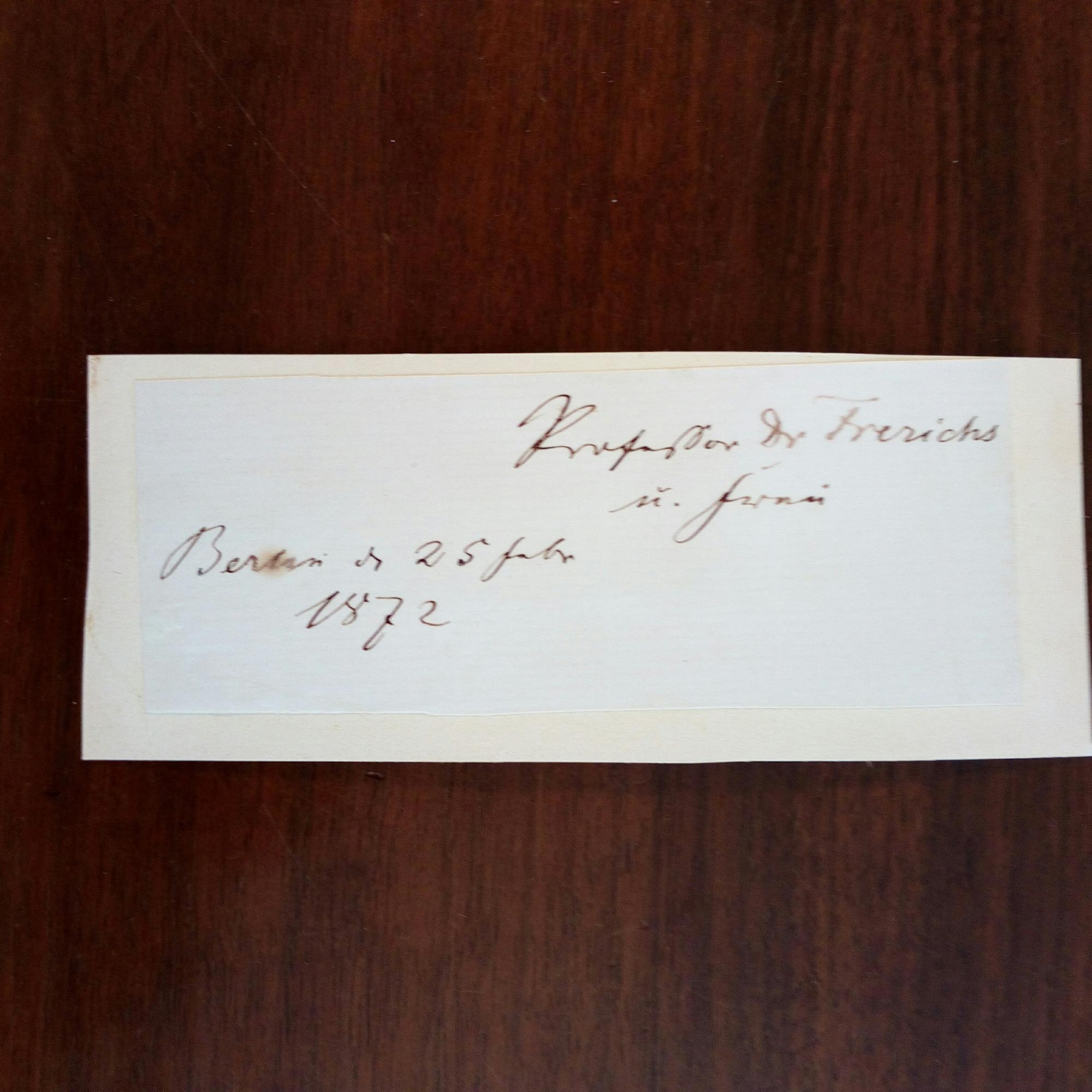 1819-86, Pathologe - Fragment eines Schreibens m. U., O. u. D. Berlin 25.2.1872, mont., Gebr.spuren.