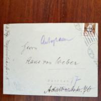 1881-1957, phantast. Schriftsteller, Kriegs-kamerad Hitlers, Freund Th. Manns - E. postal. Umschlag (München 2.11.1922) m. U. im Abs., beschn., ger. Altersspuren An den Münchner Verleger und Mäzen Hans von Weber (1872-1924).