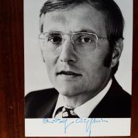 1923-2002, Journalist und Publizist ("Der Spiegel") - Pfo. mit U. und D. 31.3.1965, auf Rückseite. Mit Begleitbrief seines Sekretariats. Beiliegen: Karte der BP zum Staatsbesuch des Schah 1967 (mit Foto), mit U. auf Rückseite, und 4 weitere Belege, 2 davon auch mit U.