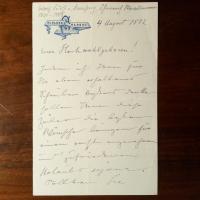 1821-85, österr. Staatsmann - E. Br. m. U., Br.kopf von "Schloss Goldegg" 4.8.1882, 2 S. 8°. Wünscht einem "Hochwohlgeboren" einen schönen Urlaub. ...Sollten Sie in unsere Nähe kommen, so hoffe ich sehr daß Sie nicht an Goldegg vorüberfahren...