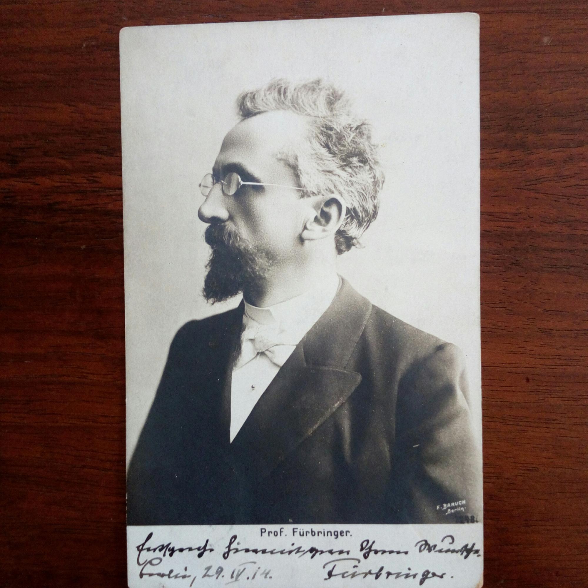 1849-1930, Mediziner, Bruder des Anatomen Max F. - Pfo. (Baruch, Berlin) mit E., U., O. und D. Berlin 29.4.1914, als e. postal. Postkarte, Adr.seite ger. beschmutzt.