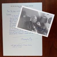 1907-2005, brit. Dramatiker - E. auführl. Zitat aus "The Lady's not for Burning" mit Widm. (für den Journalisten und Kommunikationswiss. in Eichstätt Klaus Meier) mit U., 17.6.1993, 1 S. 8°, Br.kopf. Beiliegt privates Pfo. mit E. und U.