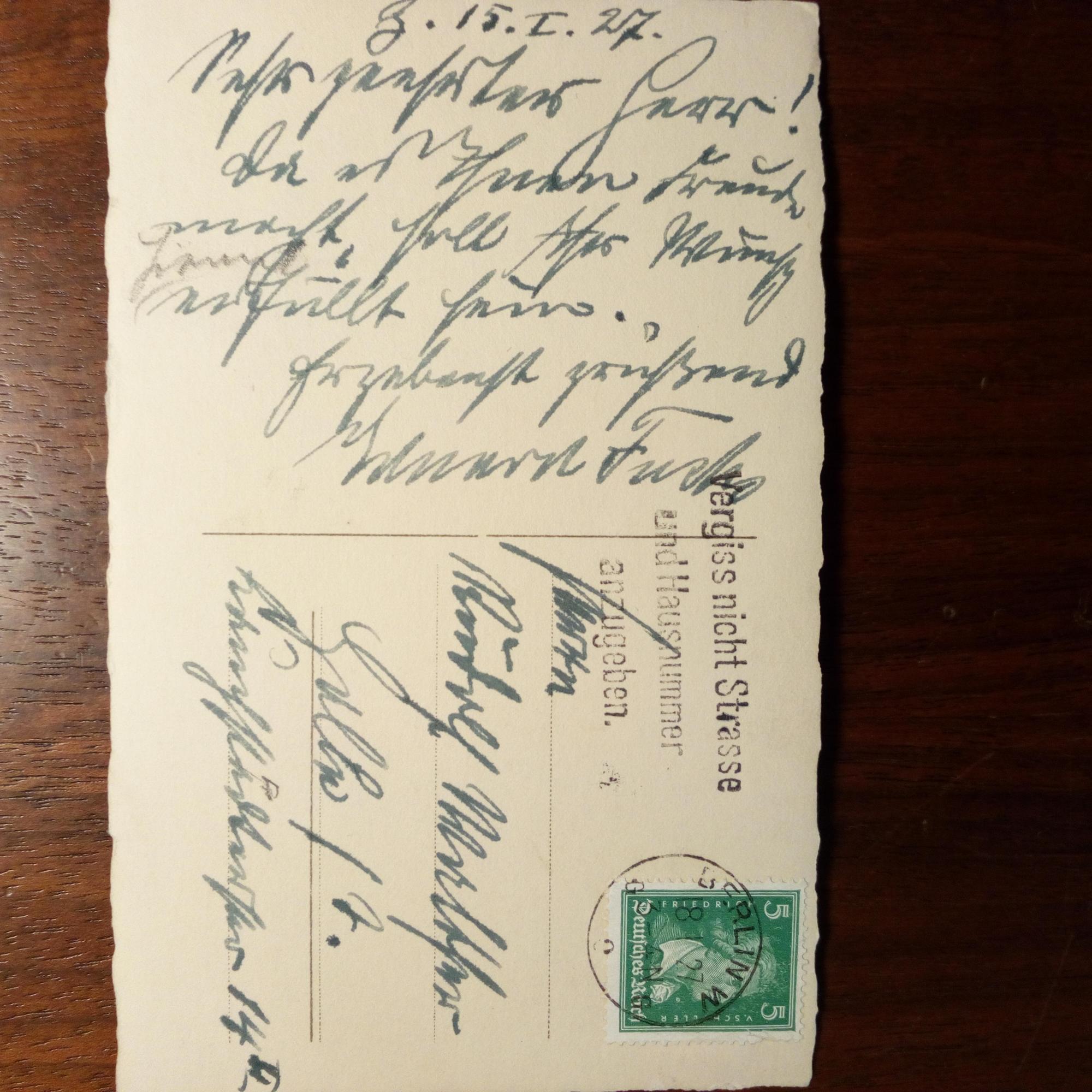 1870-1940, Lyriker, Historiker ("Illustrierte Sittengeschichte") und Revolutionär - E. postal. Ansichtskarte (sein Haus im Winter) mit U., Berlin 15.1.1927. An einen Sammler in Halle.