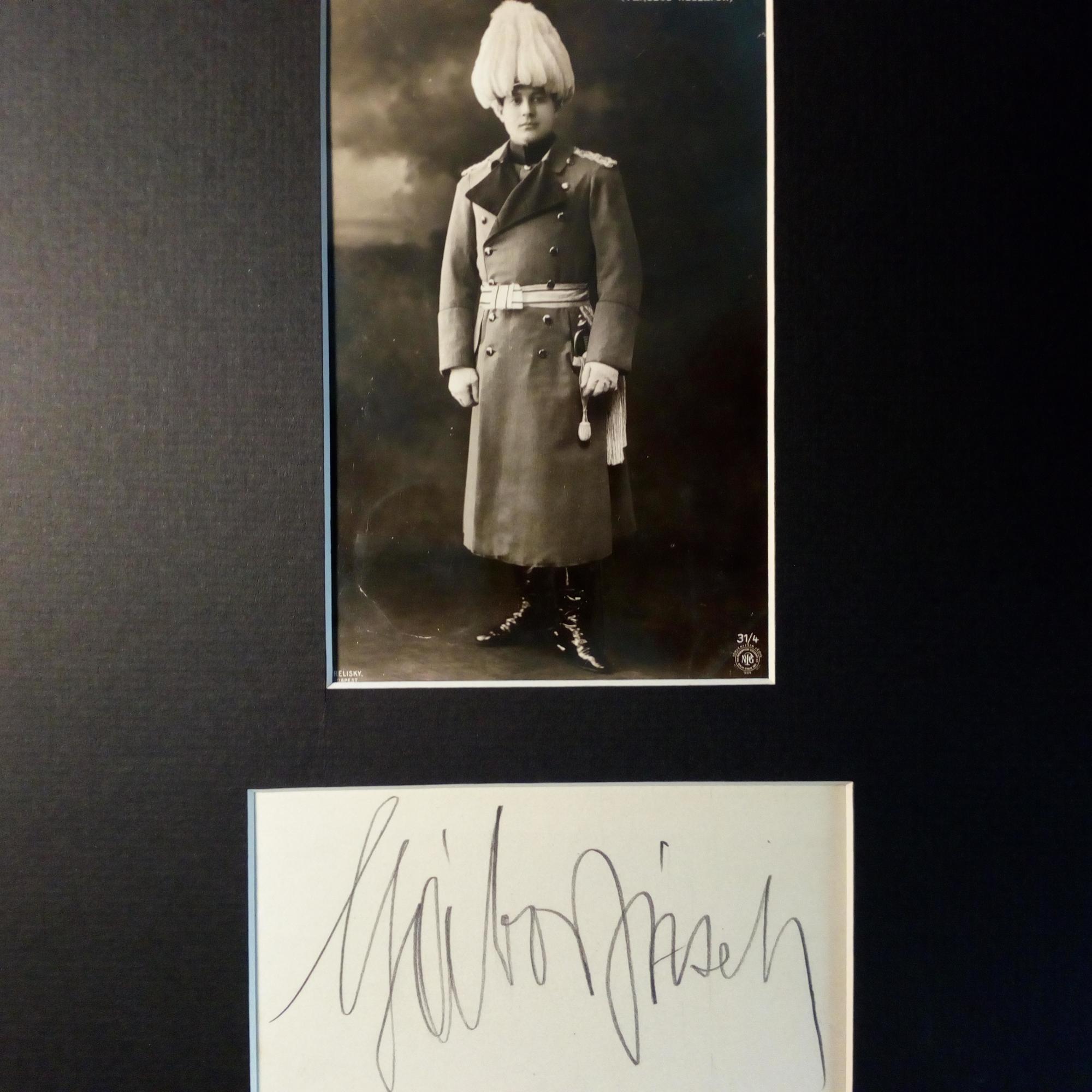 1879-1929, ungar. Sänger (Tenor) - Kärtchen mit großer U., mont unter Rollen-Pfo. (als Husar) in 4°-Passepartout.