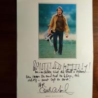 1942-2017, dt. "Country-Schlager"-Sänger - E. Notenz. ("Meine Helden sind die Fraun + Männer..."), Sinnspruch, E. u. U. unter auf 4° mont. Farb-Pfo. Beiliegt Pfo. m. U. aus gl. Zeit (1977).