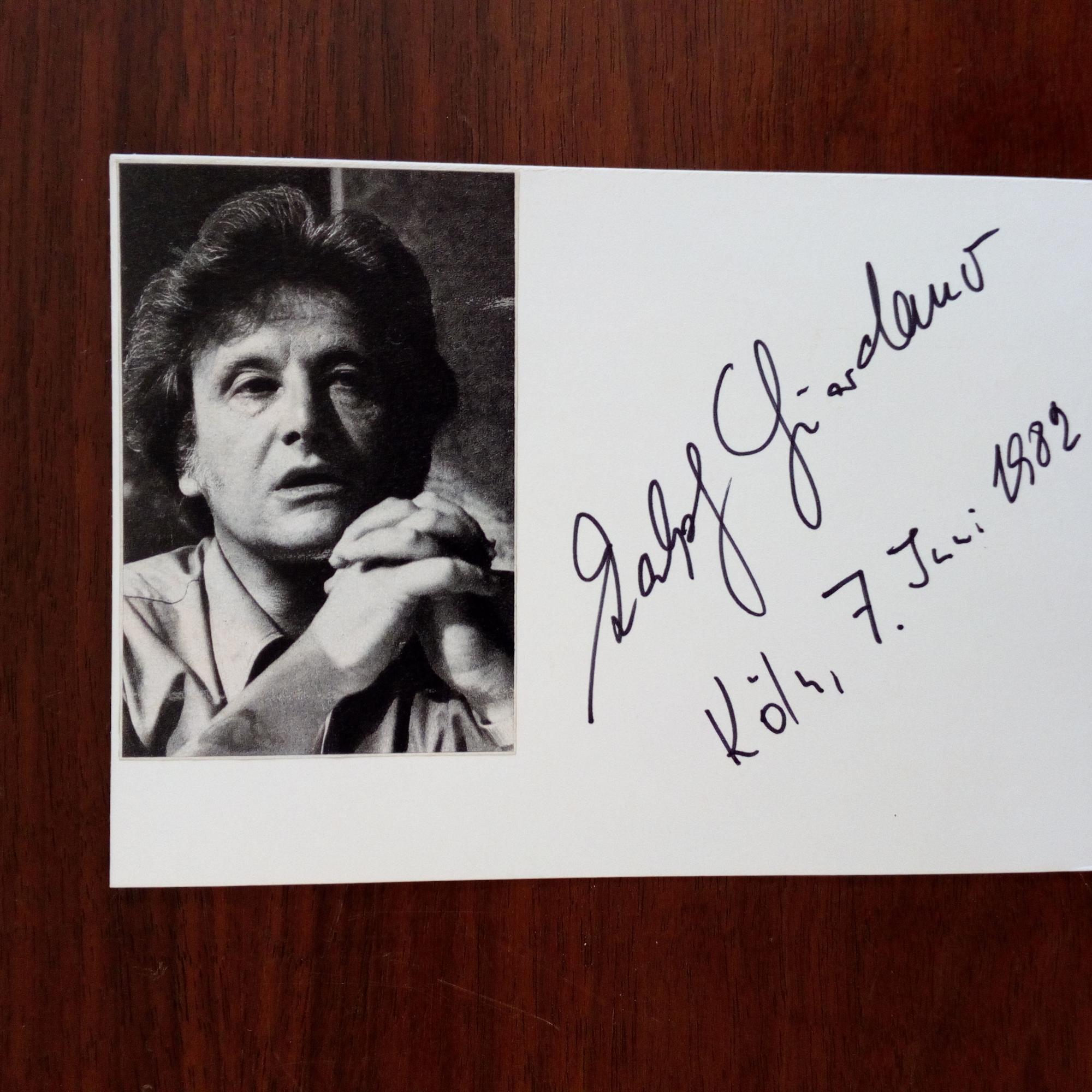 1923-2014, Journalist und Schriftsteller - Karte mit mont. kl. Druck-Pfo., U., Köln 7.7.1983. Beiliegt priv. Farb-Foto (zus. mit einer Dame beim Eintrag in Album), auf Rücks. U. u. D. 3.12.2007.