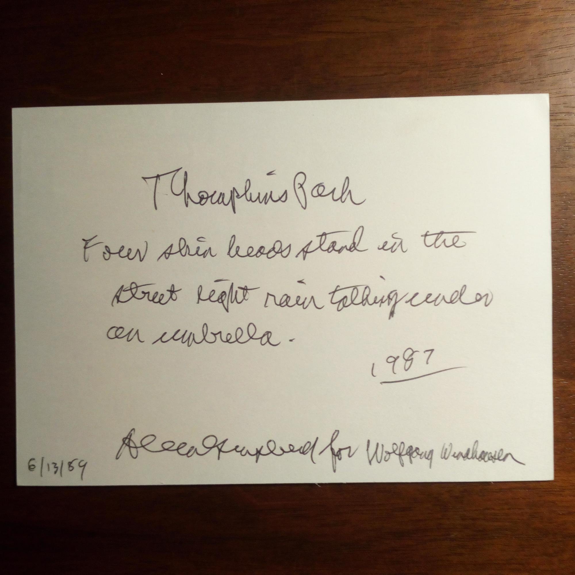 1926-97, US-Dichter - Karte mit e. Zitat (4 Z., von 1987), Widm. und U., 13.6.1989. Beiliegt: Karte mit früher U. und Pfo. (aus Zeitschrift), zus. mont. in 4°-Passepartout.