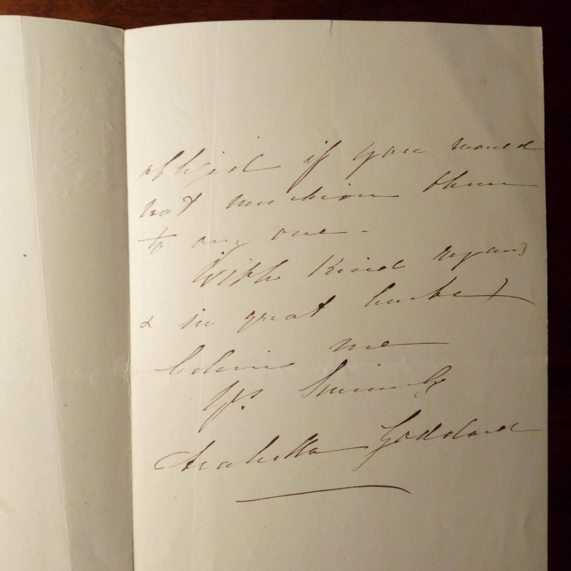 1836-1922, frz. Pianistin - E. Brief mit U., (London), 1 ¾ S. An den preuß.-engl. Dirigenten August Manns (1825-1907) in London betr. Vorbereitung von Konzerten.