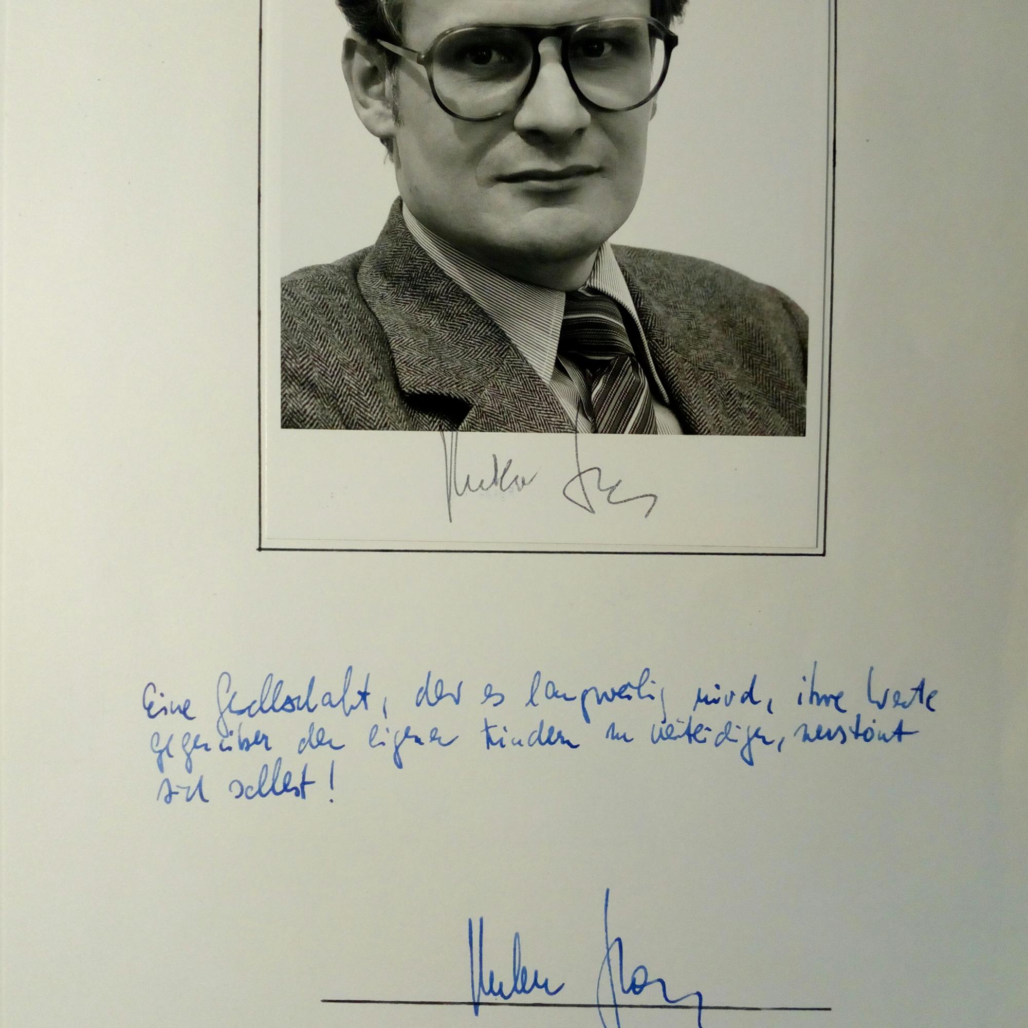 1939-2005, SPD-Politiker - E. Zitat u. U. unter auf 4° mont. Hochglanz-Pfo. Beiliegen ein Farb-Pfo. m. U. und Visitenkarte.