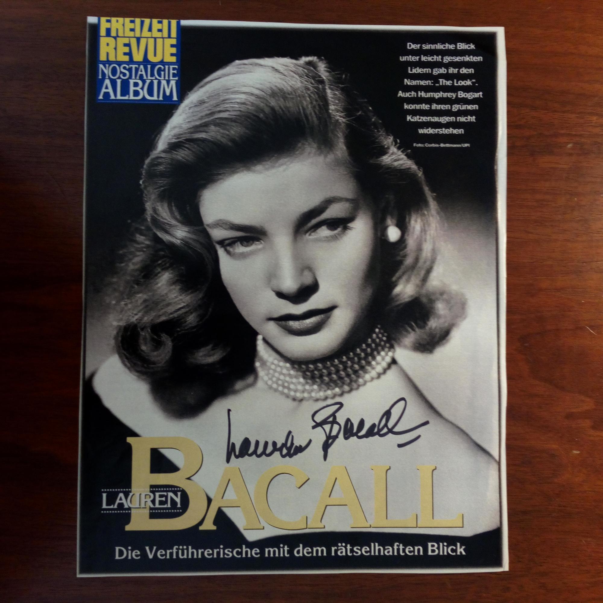 1924-2014, US-Schauspielerin - Karte mit großer U., portugies. Beschriftung 21.1.1987. Beiliegt aus späterer Zeit: Seite aus der Zeitschrift "Freizeit-Revue" mit U. auf Pfo.