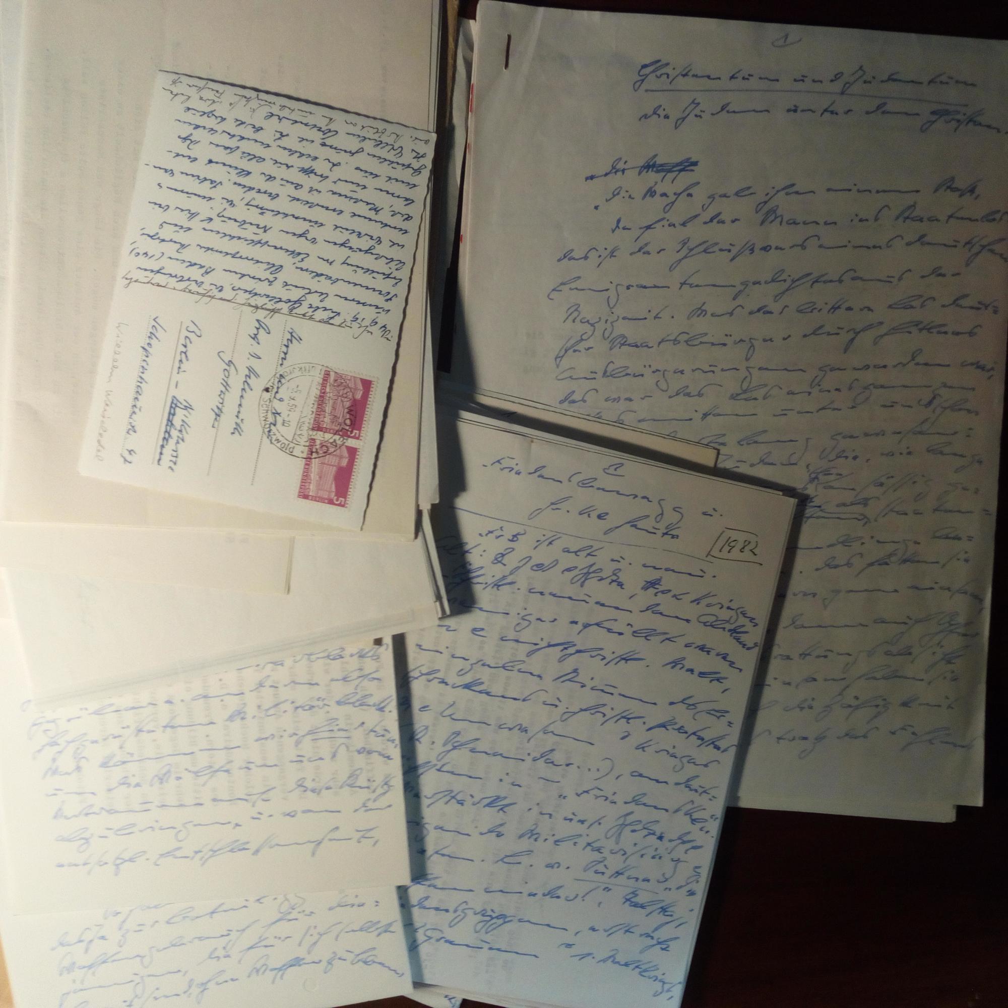 1908-93, evangel. Theologe7 e. Manuskripte: 1. "Gutachten Rudersdorf", Dissertations-Gutachten), 8 S. 8°. Mit e. Begleitbrief mit U., 3.2.1977. 2. "Ohne Waffen leben" (13 ½ S. 8°), Rede in der Martin-Luther-Kirche Berlin 28.10.1978. 3. Brief (5 ½ S. 8°, Okt. 1979, an den niedersächs. Min.präsident Ernst Albrecht (1930-2014, CDU) bezügl. dessen Entscheidung, vietnames. "Boat People" aufzunehmen. 4. "Thesen-Entwurf für Gustav-Heinemann-Initiative, Rastatt Mai 1980" (10 ½ S. 8°, geklammert, gel.). 5. "Christentum und Judentum. Beitrag zum Katalog der Ausstellung 'Juden in Preußen'. Berlin August 1981.", 8 S. 4°, dicht geschr. 6. "Die Friedensbewegung - Frucht der Bekennenden Kirche", Aufsatz für die Zeitschrift "Botschaft und Dienst" 1983, ohne U., 15 S. 8°. Mit Begleitbrief mit U. 7. "Absage an den Geist der Abschreckung" (12 S. und e. Titelblatt), mit Vermerk: "in Junge Kirche, 1984/11'", mit e. postal. Umschlag. Beiliegen: Karte mit e. Luther-Zitat und U., 29.11.1977, gedr. "Brief an Freunde" (1979) mit e. Zusatz und U. und SK mit U. Sowie 20 Briefe mit U. an ihn (versch. Anlässe, manche e.): G. Altner, H.-W. Bartsch, H. Bergmann, H. Bürkle, R. Italiaander, J. Moltmann, G. Picht, J. Taubes, H.W. Wolff, H. Zahrnt...