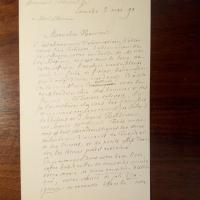 1822-96, frz. Schriftsteller - E. Brief mit U., 3.5.1890, 1 ½ S. kl. 8°. An den Schriftsteller Paul Hervieu (1857-96): Lobt ausführl. dessen neue Erzählungen-Sammlung "Flirt": ...votre habituelle et amusante ironie, votre ironie de pionce sans-rire distingué, votre ironie de jolie blagueur en cravatte blanche; cette sorte de schopenhauerisme parisien...