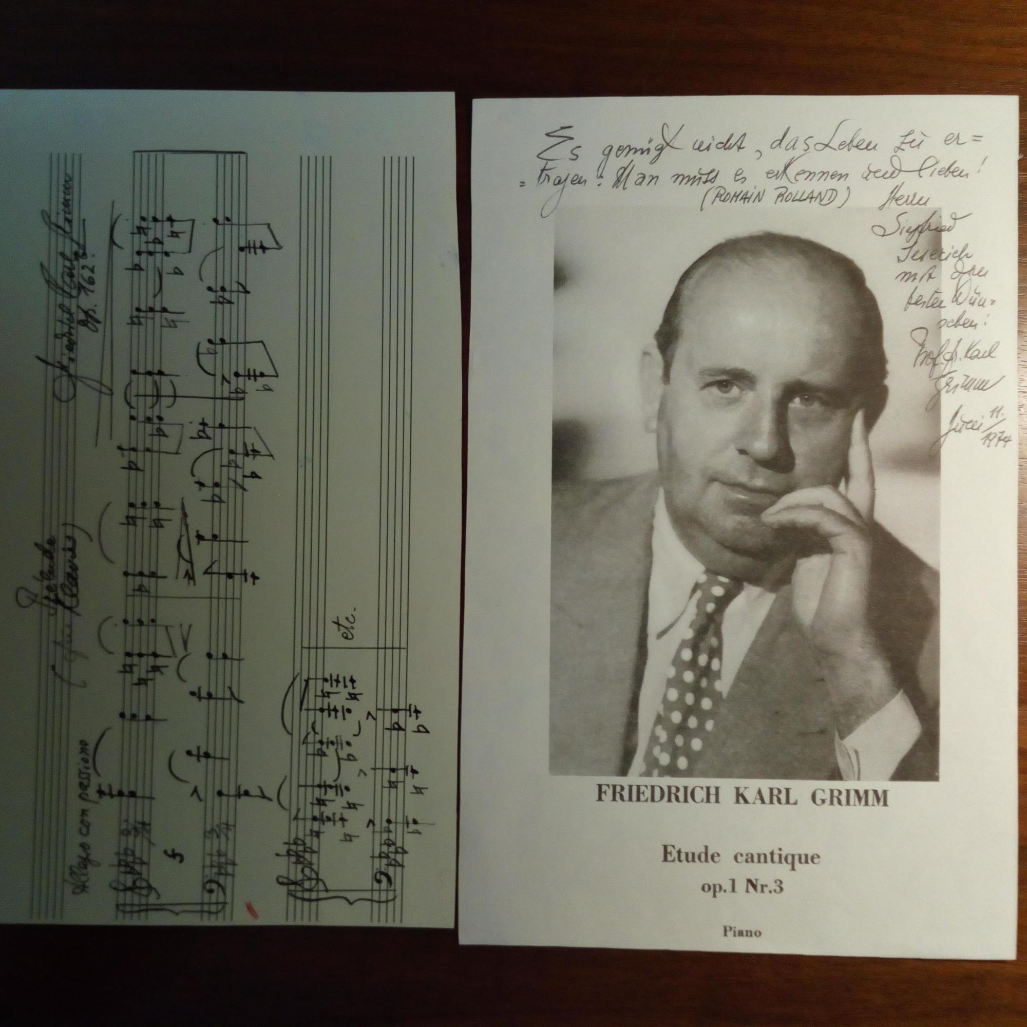 1902-80, Komponist - E. Noten-Manuskript ("Novelette in Form einer Concertedtüde für Piano solo, Op.78 Nr.%"), Reinschrift, 3 S. folio, mit Tesafilm geheftet, 2 x U. und Adr.stempel auf Titel. Mit e. Begleitbrief mit U., Berlin 26.7.1977, 2 S. 4°, Abs.stempel. Beiliegt kl. Blatt mit Widm. und U. (1968) und kl. Druck-Pfo.