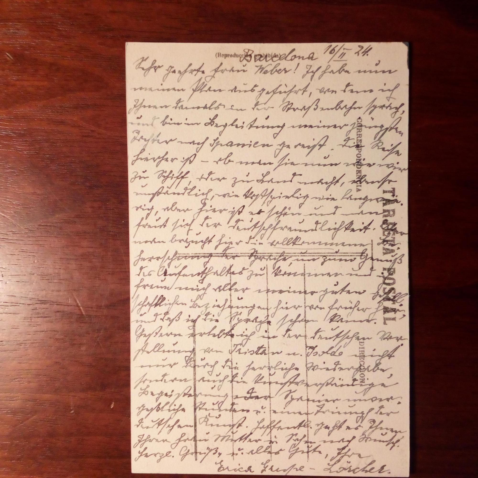 1875-1960, Schriftstellerin - Ansichtskarte (Stierkampf in Barcelona) als e. Brief mit U., Barcelona 16.2.1924, kl. u. dicht geschr. Reisegrüße an Frau Weber: ...Gestern erlebte ich in der deutschen Vorstellung von Tristan und Isolde nicht nur durch die herrliche Wiedergabe, sondern durch die kunstverständige Begeisterung der Spanier unvergeßliche Stunden...