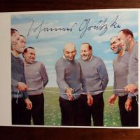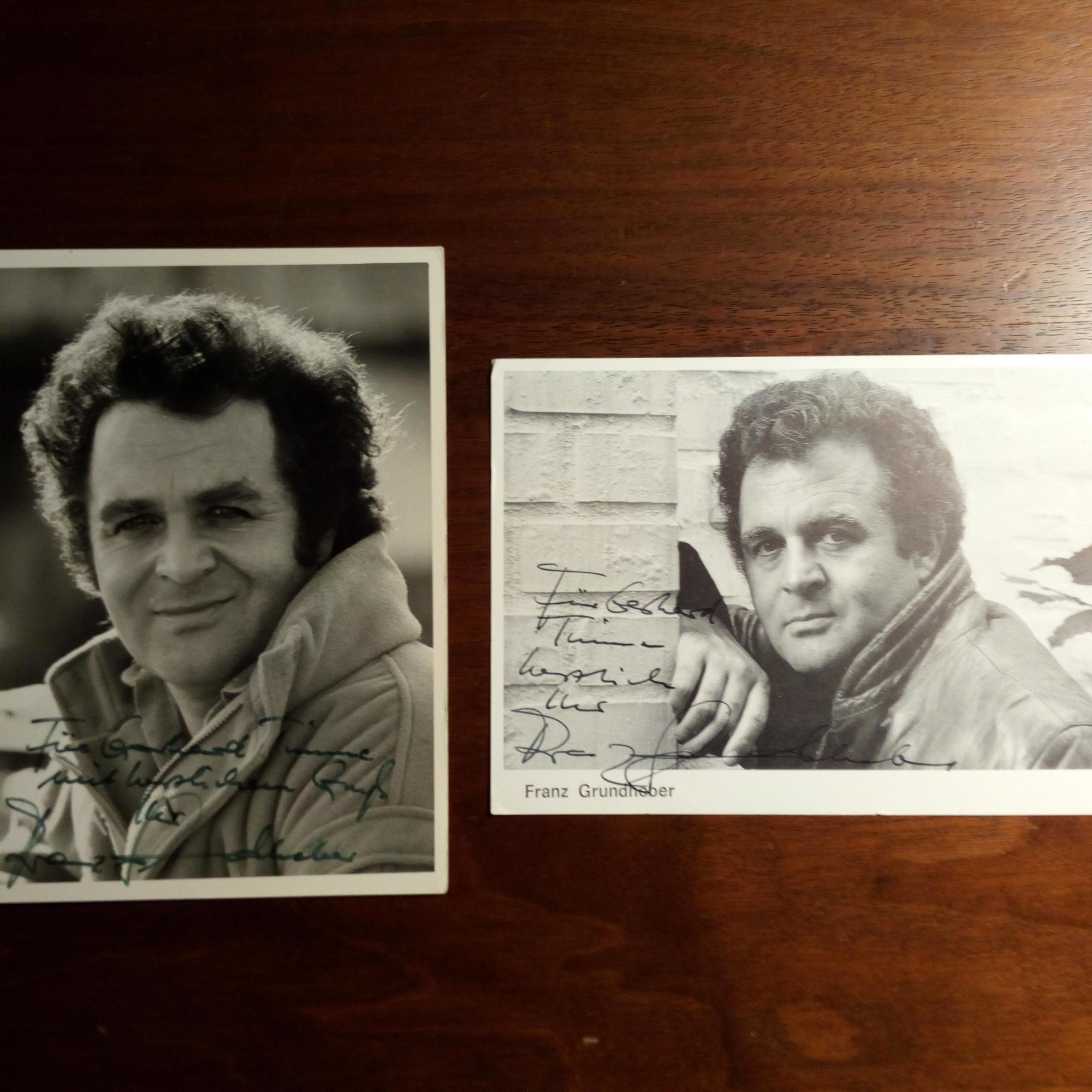 1937-2025, Sänger (Bariton) - 2 priv. Pfo. (80er Jahre), je mit Widm. und U. Dazu Karte mit e. Zeilen und U., Hamburg 13.3.1996. Beiliegen 2 spätere Rollen-Pfo. (Hochgl., Farbe), je mit U.