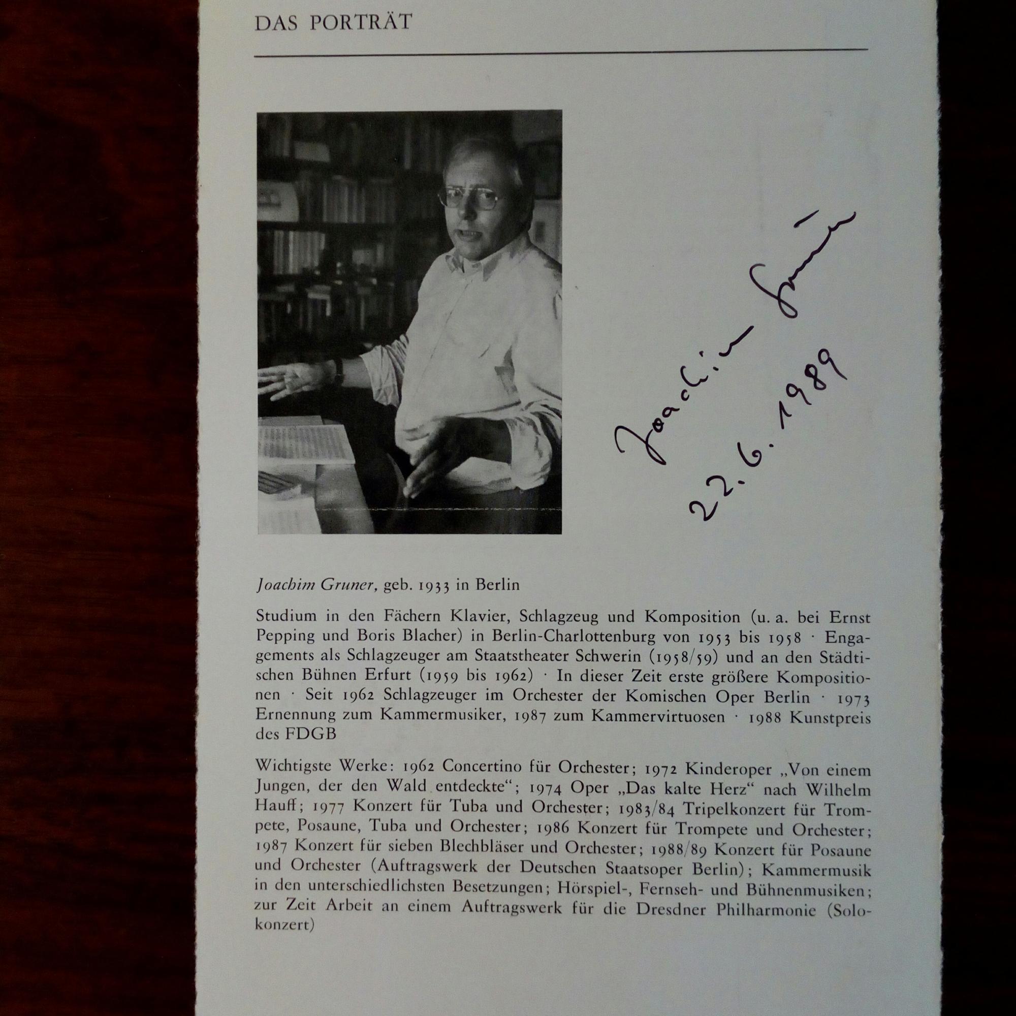 1933-2011, Percussionist u. Komponist - biograph. Seite aus einem Programmheft (m. Pfo.) mit U. und D. 22.6.1989.