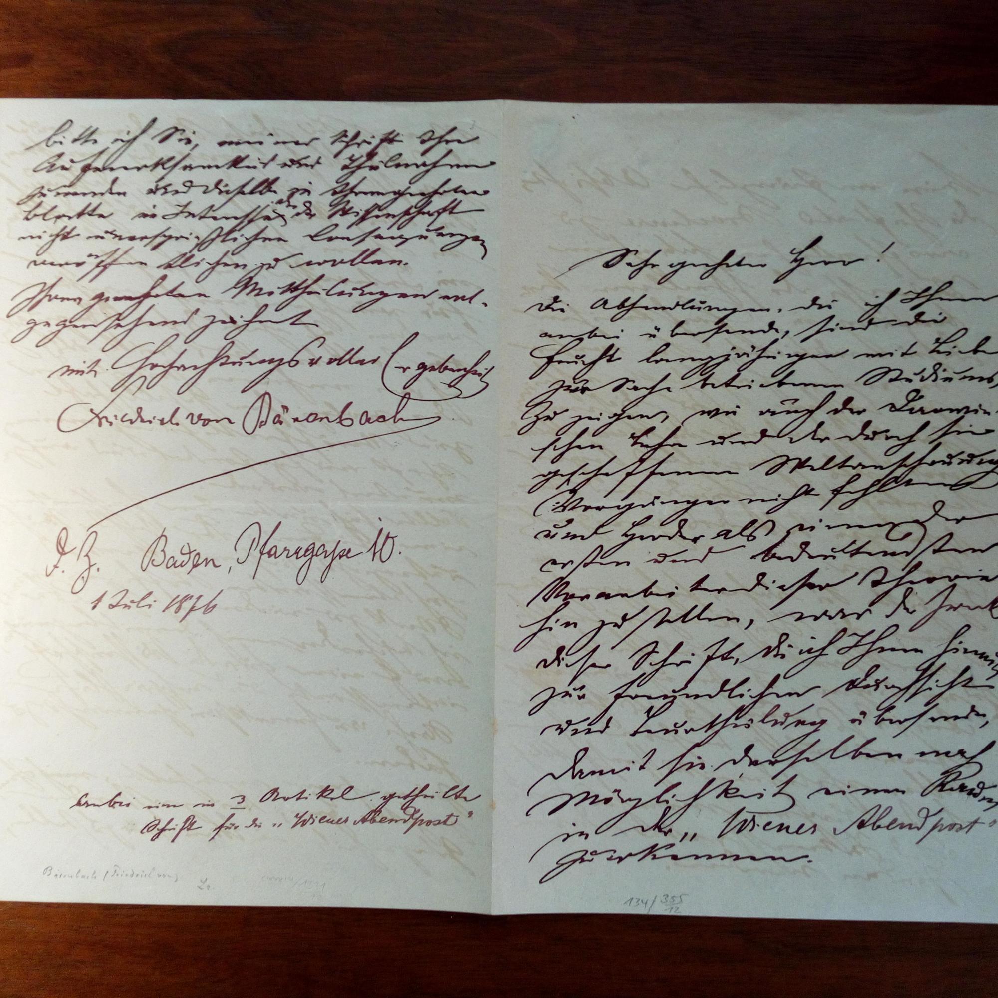1856-1914, ungar. Philosoph - Brief mit U., e. Absender (Budapest), 4 S. gr. 8°, Empf.vermerk 1.7.1876. Inhaltsreiches Begleitschreiben zu einer Schrift über Johann Gottfried Herder, damit sie "einen Beitrag in der 'Wiener Abendpost' bekäme...".