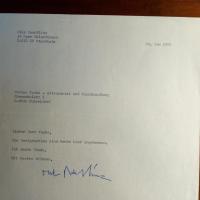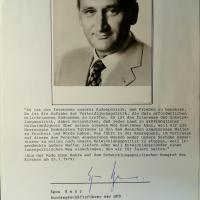 1922-2015, SPD-Politiker und Friedensforscher - 2 Pfo. mit U. Mit Begleitbrief seines persönl. Referenten Eitel, 1 S. 4°, Briefkopf des Bundeskanzleramts.
